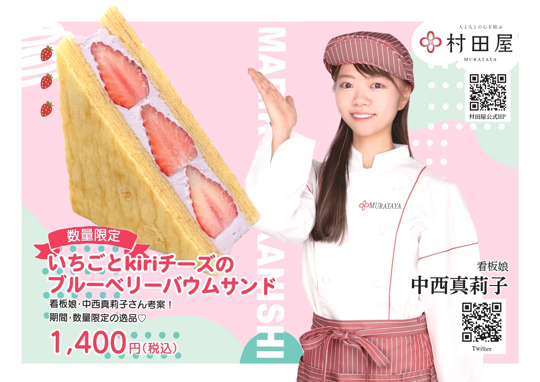 看板娘・中西真莉子さんが考案してくださった『いちごとkiriチーズのブルーベリーバウムサンド』
