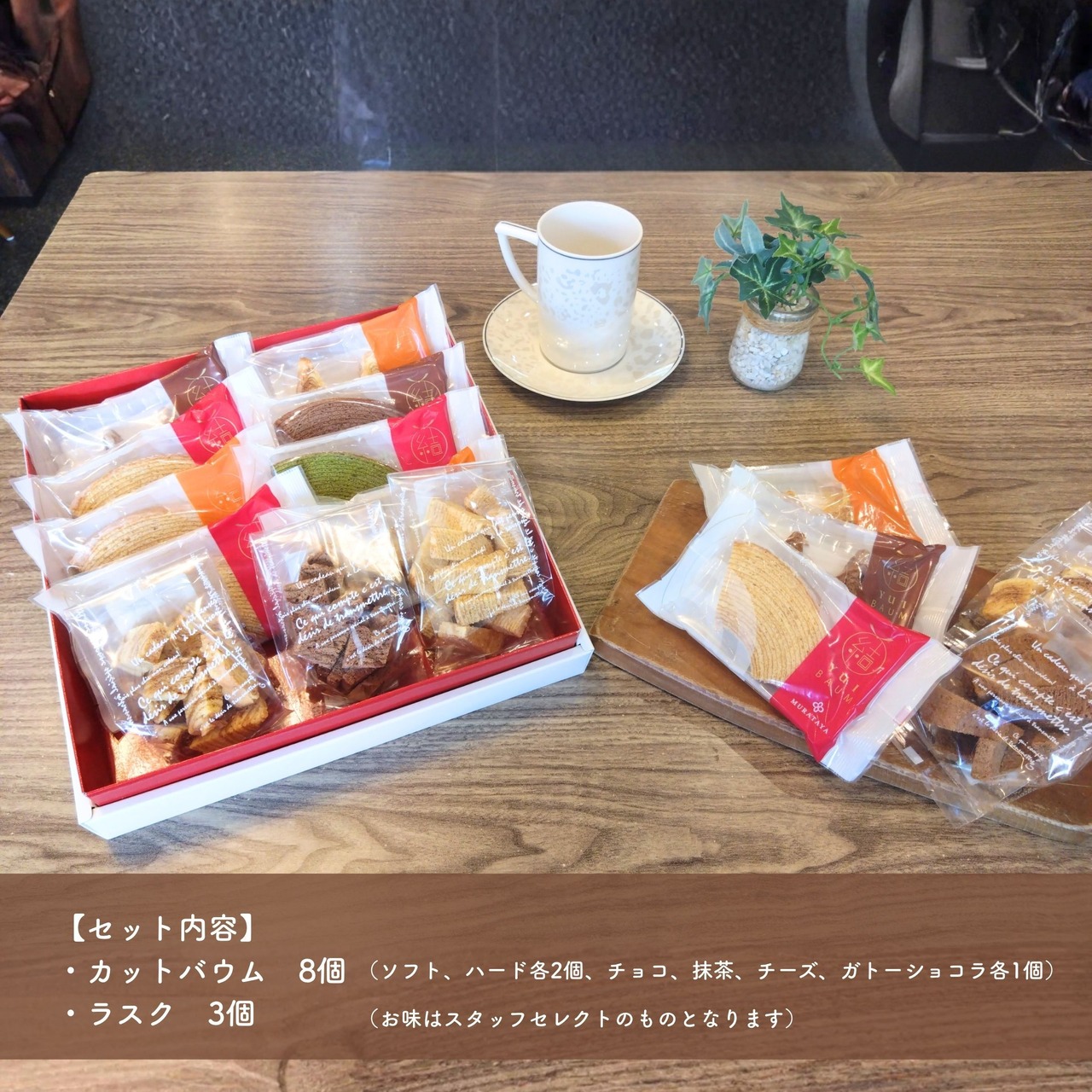 手間暇かけて丁寧に焼き上げるため普段は店頭限定でしか販売していないラスクを、今回特別にセットにしました。