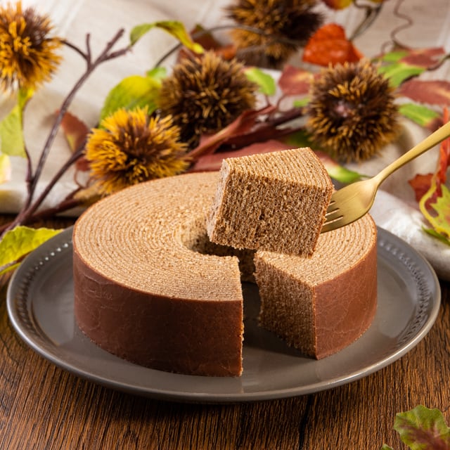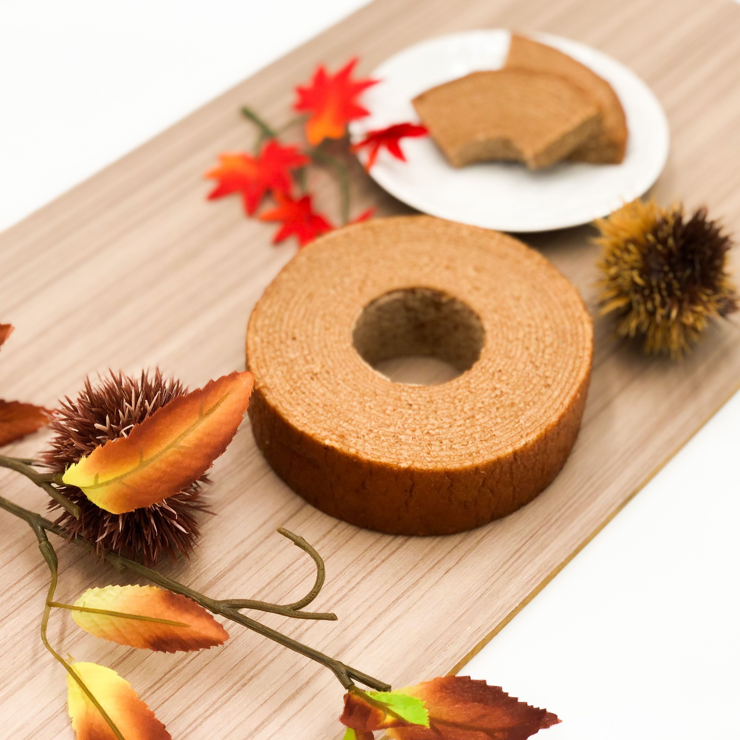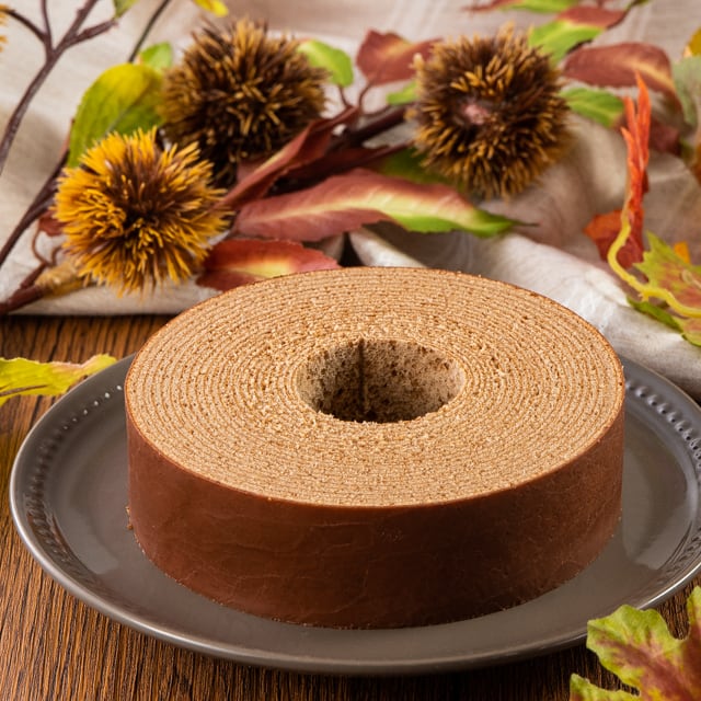 地元・埼玉の素材にこだわった彩の国優良ブランド認定の「愛たまご」をはじめ、小麦粉に「桜つばめ」、牛乳に「西武牛乳」を使用したしっとり、ふわふわのバウムクーヘンにマロンペーストとオイルを加えたマロンの風味を楽しめるバウムクーヘンです。